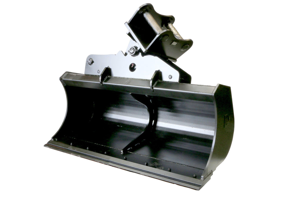 Hydraulic-tilt ditching buckets based on our Scandinavian style of ditching/grading bucket shell.