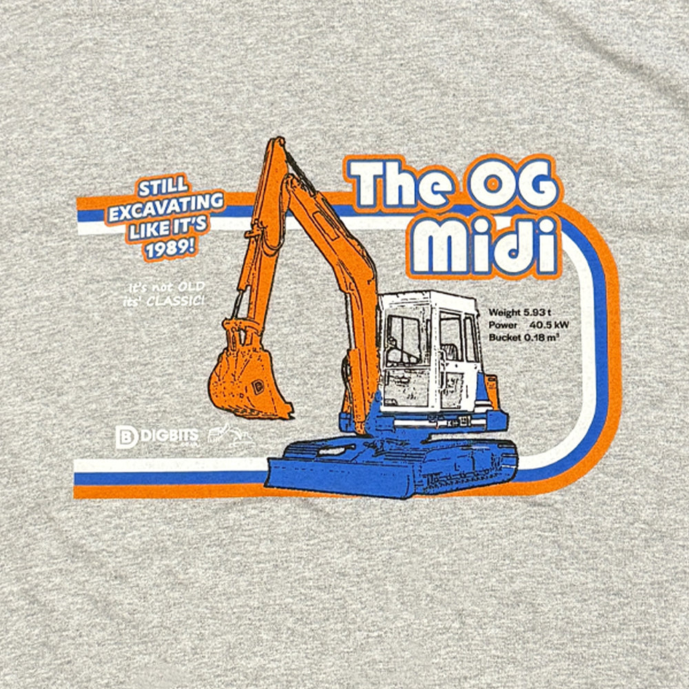 Pay homage to a machine that helped redefine the jobsite. The OG Midi T-Shirt celebrates the legendary KH191, launched in 1988—one of the first true "midi" excavators. Back when the UK was still warming up to the idea of mini excavators, the KH191 quietly proved that 5–6 tonne machines weren’t just scaled-up toys—they were the future. This tee is a nod to that turning point.