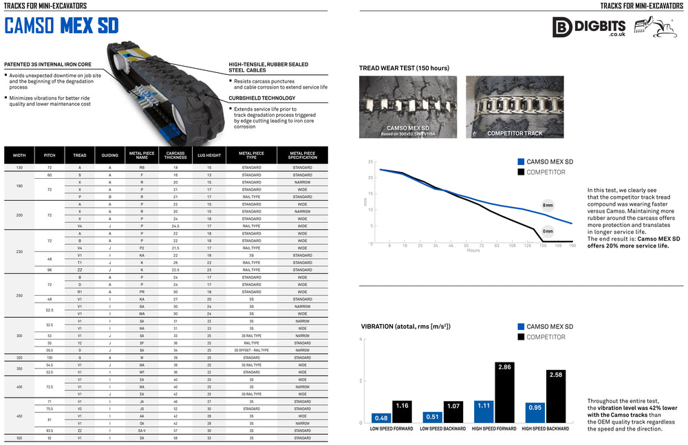 Camso SD rubber track for mini diggers including: