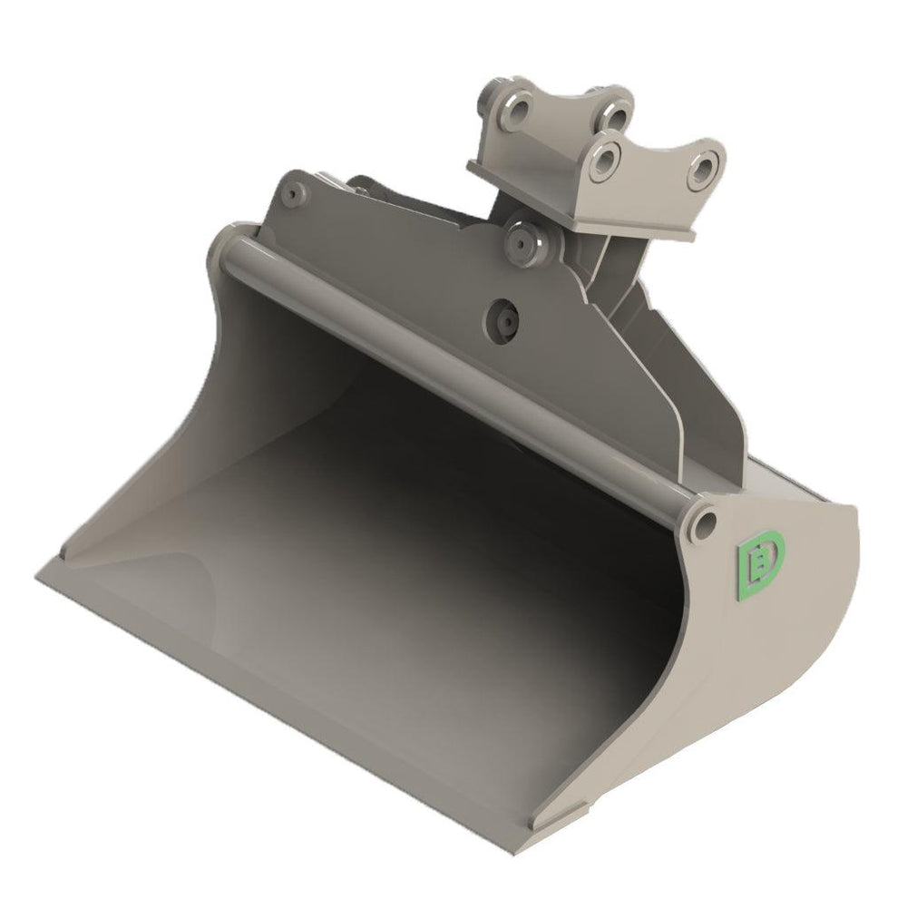 Hydraulic-tilt ditching buckets based on our standard type of ditching/grading bucket shell.