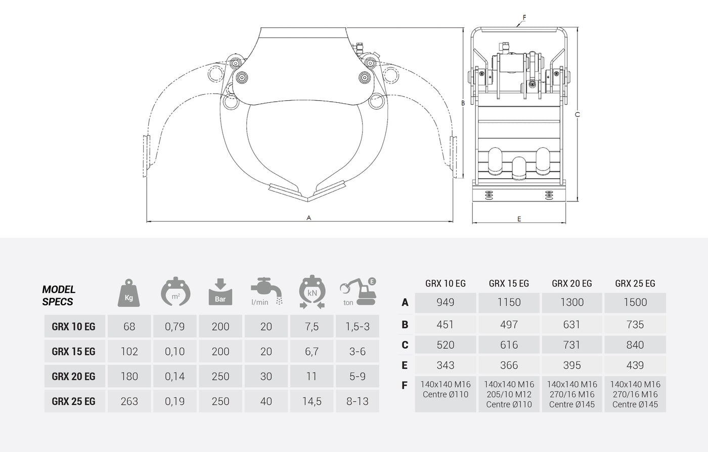 Hydraulic Selector Grab, 1.0 - 3.0t excavators