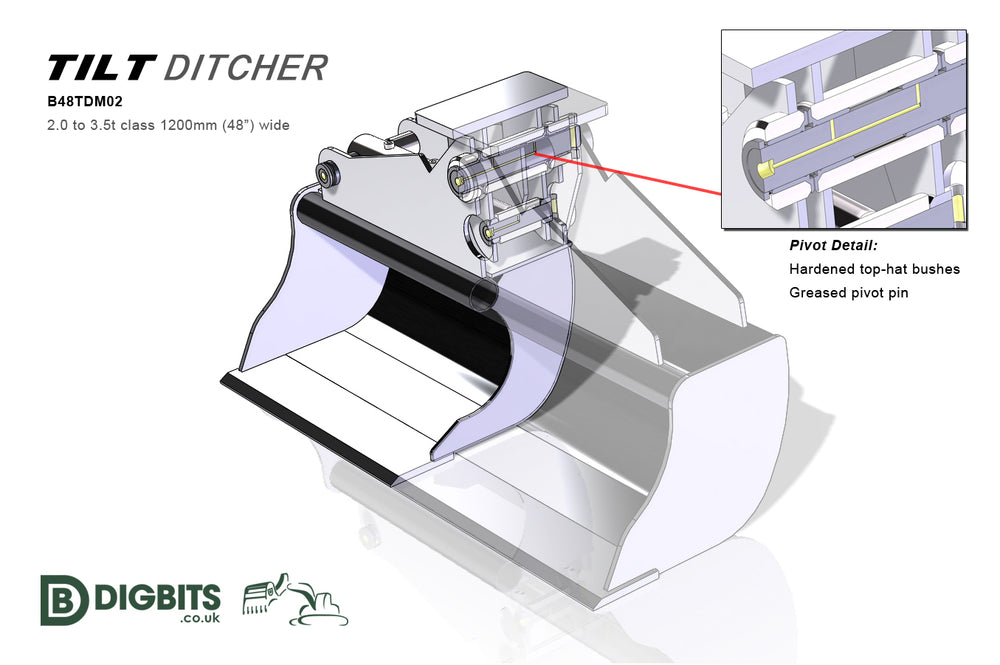 60" (1,500mm) wide, hydraulic Tilt Ditching Bucket for 4.0 to 5.9t mini excavators.