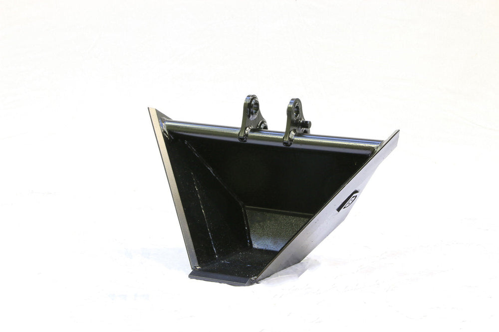 V-Ditching bucket with 150mm (6") base and approximately 600mm (24") across top beam. For digging ditches and shallow-sided trenches.