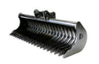 (1200mm) 48" General purpose rake bucket suits applications where the robustness of our Land Clearance Rake or Riddle Buckets are not needed and also where a wider sweep is more important than absolute strength and digging power. Gaps between the bucket ribs are set at approximately 50mm. Front tines are made from Hardox ® 450 steel for extra strength and wear resistance.