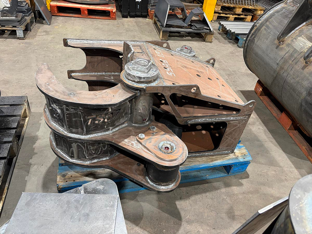 The excavator mounting bracket can be bolted onto either the top, or the side of the chassis, to enable vertical or horizontal orientation of the jaws.