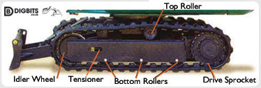 The top rollers are designed to carry the tracks over the top of the track frame and are part of the tensioning system. Not all machines are fitted with top rollers - generally only diggers over 3 tonnes in