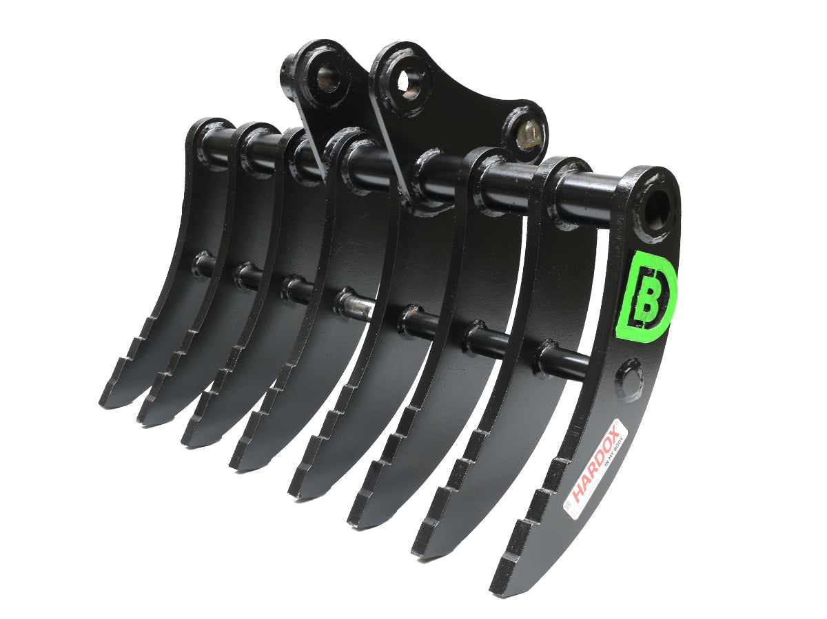 72" / 1800mm Rake with 8 Hardox tines, 80mm pins for 18 to 24 tonne excavators
